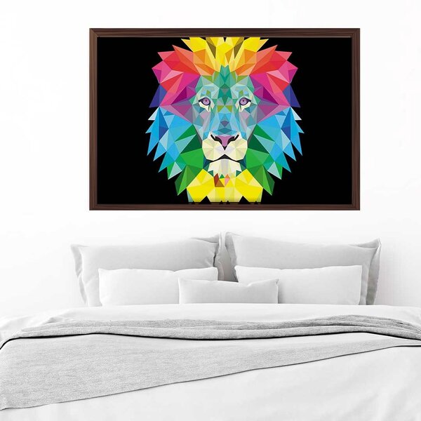 Quadro com moldura leão geométrico madeira escura - médio - # quadros com moldura transforme seu ambiente com os quadros wevans. Versáteis para decorar a sala, quarto, cozinha, escritório ou onde sua imaginação mandar. Os quadros são cheios de qualidade, estilo e persona...