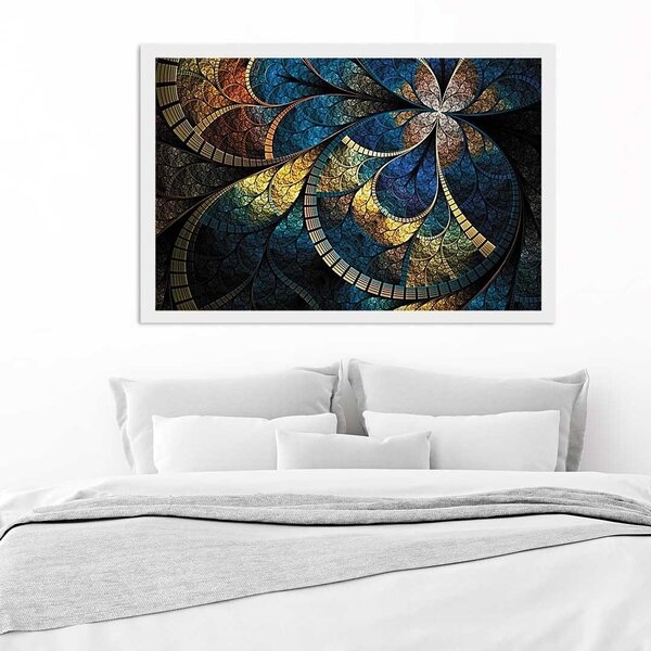 Quadro com moldura vitral azul branco - grande -
