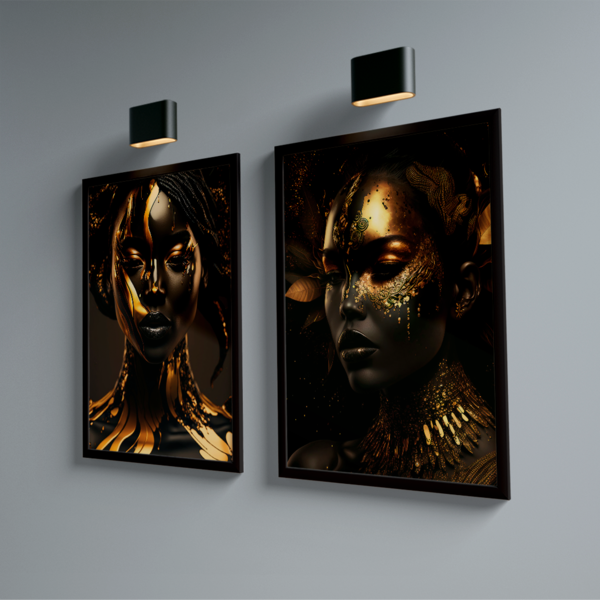 Quadro dupla negras golden -- br artes p (60x40) c/ moldura preta - -qualidade premium (padrão museu) -impresso em canvas original com selo(tela de pintura) -alta durabilidade (durabilidade de mais de 30 anos) -alta resolução full hd 4k - 6 vezes mais leve que os quad...
