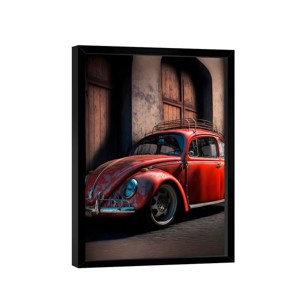 Quadro fusca vermelho intenso -- br artes moldura preta - grande 118x78 - - qualidade premium (padrão museu) - impresso em canvas original com selo(tela de pintura) - alta durabilidade (durabilidade de mais de 30 anos) - alta resolução full hd 4k - 6 vezes mais leve qu...