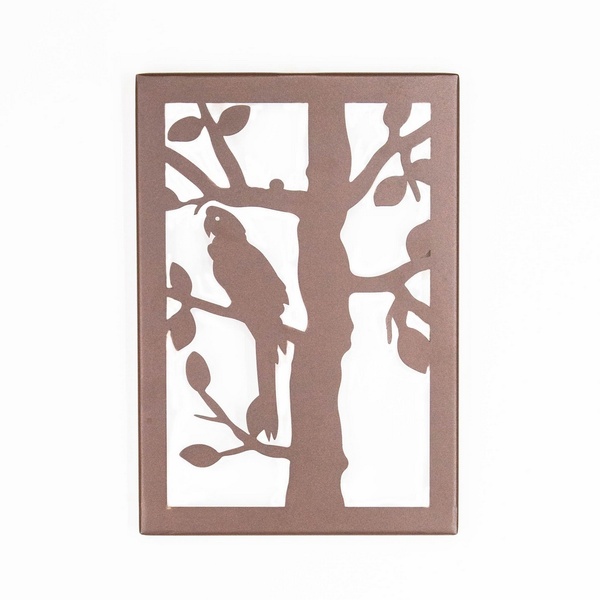 Conhecida por suas cores as araras são aqui representadas por um estilo monocromático que garante requinte e sutileza ao ambiente. O quadro galhos e arara é uma charmosa peça cheia de detalhes e super versátil podendo ser usada em diversos lugares seja sala quarto escritório ou onde sua imaginação permitir. a cortes cores é especialista em transformar aço em arte desde 2007! Todas as nossas peças são executadas em aço galvanizado com pintura eletrostática o que torna nossos produtos extremamente duradouros podendo ser usado tanto em ambientes internos quanto externos. especificações:  material: aço galvanizado altura: 33 cm  largura: 23 cm  peso: 510 g cores: preto fosco marrom fosco instalação: instalação simples fácil e rápida apenas  parafusar. importante: - podem ocorrer variações na cor do produto conforme o contraste e brilho do monitor luminosidade local ou percepção visual. - imagens ambientadas são meramente ilustrativas os objetos e demais móveis não acompanham o produto.