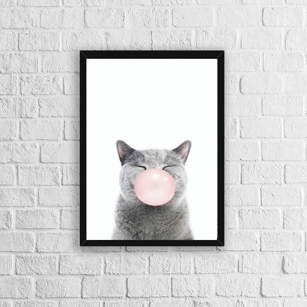 Quadro Gatinho Chiclete 24x18cm Moldura:madeira Branca