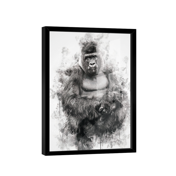 Quadro gorila -- br artes moldura preta e vidro - médio 84x54 -