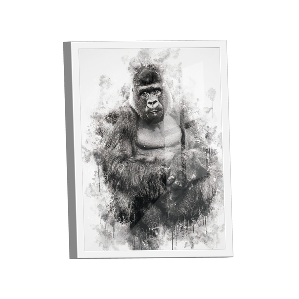 Quadro gorila -- br artes moldura branca e vidro - pequeno 60x40 -