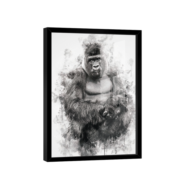 Quadro gorila -- br artes moldura preta e vidro - grande 118x78 - - qualidade premium (padrão museu) - impresso em canvas original com selo(tela de pintura) - alta durabilidade (durabilidade de mais de 30 anos) - alta resolução full hd 4k - 6 vezes mais leve que os qua...