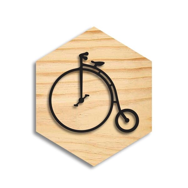 Quadro hexagonal em relevo bicicleta antiga - características gerais do produto: conteúdo: madeira pinus 20mm;escultura em mdf 6mm;cabo sisal de 80 cm finalização: pendurador fixado com parafuso nas laterais;camada protetora de impermeabilizante medidas por unidade...