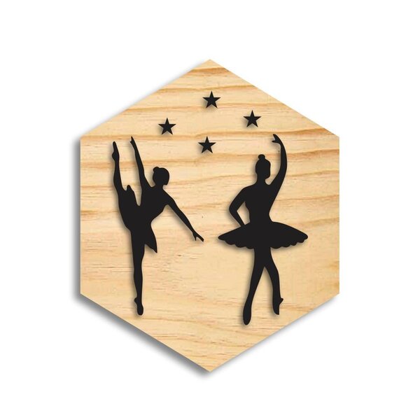 Quadro hexagonal em relevo duas bailarinas - características gerais do produto: conteúdo: madeira pinus 20mm;escultura em mdf 6mm;cabo sisal de 80 cm finalização: pendurador fixado com parafuso nas laterais;camada protetora de impermeabilizante medidas por unidade:...