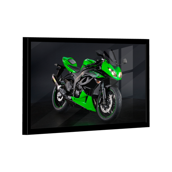 Quadro kawasaki ninja verde -- br artes moldura preta e vidro - grande 118x78 - - qualidade premium (padrão museu) - impresso em canvas original com selo(tela de pintura) - alta durabilidade (durabilidade de mais de 30 anos) - alta resolução full hd 4k - 6 vezes mais l...