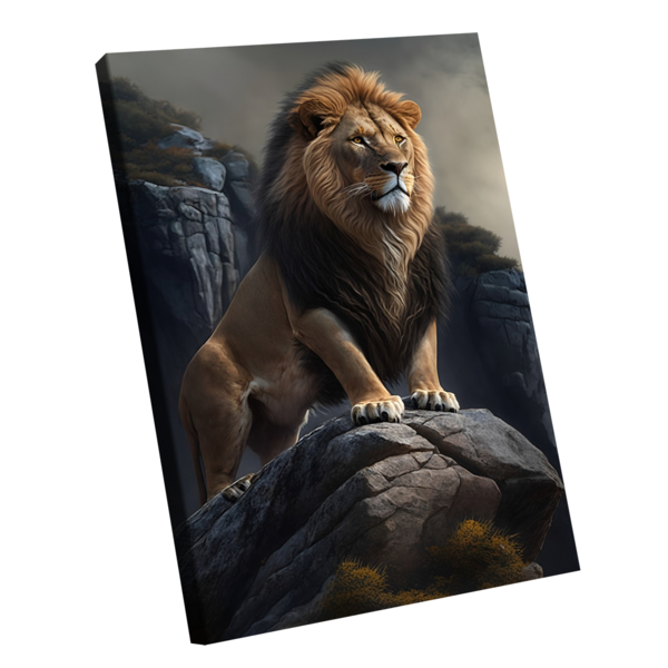 Quadro leão soberano -- br artes borda infinita - ultra grande 150x100 - - qualidade premium (padrão museu) - impresso em canvas original com selo(tela de pintura) - alta durabilidade (durabilidade de mais de 30 anos) - alta resolução full hd 4k - 6 vezes mais leve que...