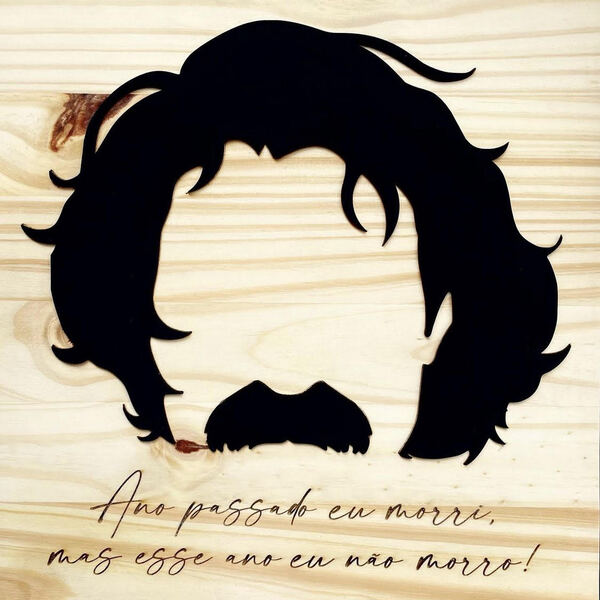 Quadro medindo 30x30cm com aplique em mdf pintado de preto em alto relevo com rosto do belchior