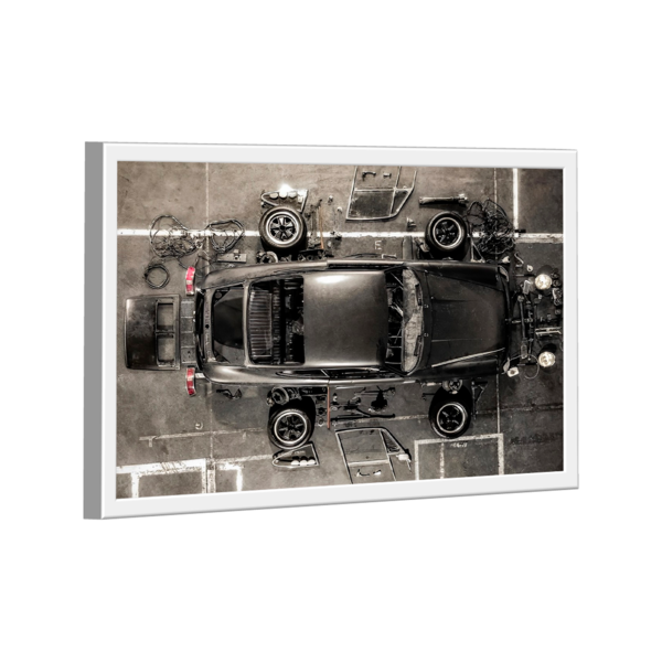 Quadro porsche reconstrução -- br artes moldura branca - gigante 180x105 -