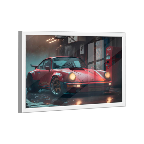 Quadro porsche vermelho -- br artes moldura branca e vidro - médio 84x54 - - qualidade premium (padrão museu) - impresso em canvas original com selo(tela de pintura) - alta durabilidade (durabilidade de mais de 30 anos) - alta resolução full hd 4k - 6 vezes mais leve q...