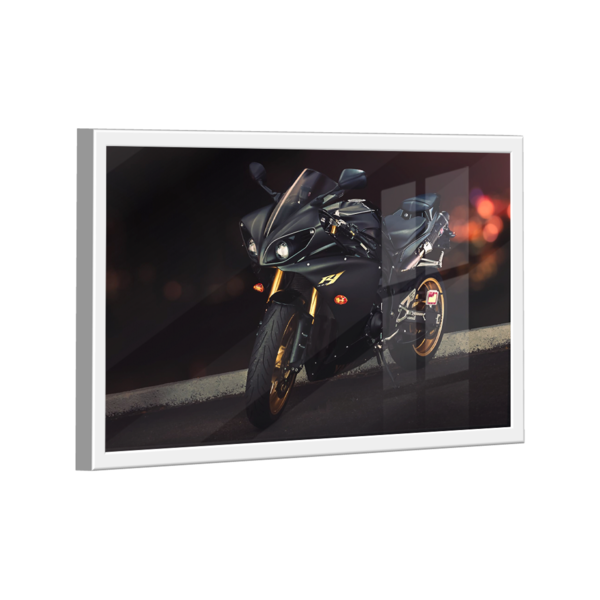 Quadro r1 black -- br artes moldura branca e vidro - pequeno 60x40 - - qualidade premium (padrão museu) - impresso em canvas original com selo(tela de pintura) - alta durabilidade (durabilidade de mais de 30 anos) - alta resolução full hd 4k - 6 vezes mais leve que os ...