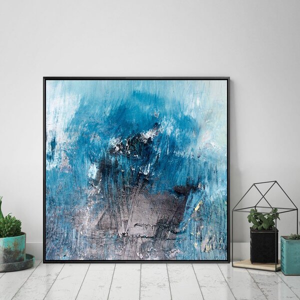 Quadros com moldura chanfrada abstrato azul pequeno -
