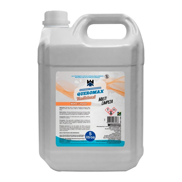 Produtos enviado apenas por transportadora queromax  querosene desodorizada tradicional aplicações: indicado para a remoção de manchas de graxas óleos gorduras e tintas. Pode ser aplicado na limpeza de pisos máquinas ferragens pincéis com resíduos de tinta azulejos entre outros.  modo de uso:  com o auxílio de um pano ou flanela aplique o produto diretamente na superfície a ser limpa. Para a limpeza de pisos deve-se misturar uma pequena quantidade em água.  precauções:  não reaproveite a embalagem. Evite o contato prolongado com a pele. Depois de utilizar este produto lave e seque as mãos. Não ingerir. Evite a inalação ou aspiração contato com os olhos e contato com a pele.   cuidado inflamável! Mantenha longe do fogo e de superfícies aquecida. fragrância: tradicional conteúdo: 5 litros validade: 24 meses a partir da data de fabricação     aut. Func./ms nº. 3.11493-2 produto saneante notificado na anvisa/ms n° 25351.331105/2022-72