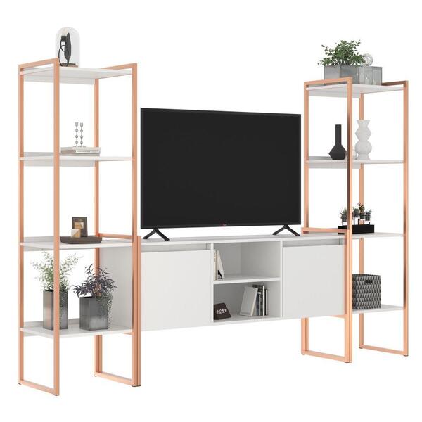 O rackveio para compor sua sala ou cozinha com seu charme industrial para a renovação do seu ambiente bonito e moderno.rack tv c/ estante em mdp perfex 15 mmcomacabamento de bordas em abs,tampo superior,nicho central para objetos,compartimento nas laterais com portas,estrutura em aço 20x20 com pintura epoxi nas cores preto.dimensões do produto:altura: 157 cmlargura: 225 cmprofundidade: 41 cmcores disponíveis:- preto- preto cobre- branco- branco cobre- affara- montanainformações complementares:material predominante: mdp perfex 15 mmpés: sim, industriais.adega: nãoprateleiras: sim (10)nicho: sim (2)portas: sim (2)gavetas: nãoporta objetos: simitens inclusos:01 rack com estante.kit completo para montagem, manual de instruções para montagem.garantia:3 meses contra defeito de fabricaçãoinformações complementares:- fotos meramente ilustrativas do produto no ambiente.- os objetos que ambientam as fotos não acompanham o produto;- verificar descrição e tamanho do produto antes da compra.- - - limpar com flanela ou pano macio seco, não utilizar produtos abrasivos, desengordurantes, álcool ou solvente. Não expor o produto diretamente à luz solar e à umidade.* ** *