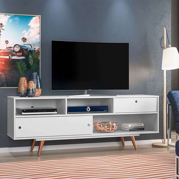 Que tal o rack lille? Mobília intrínseca à sala de estar, o rack é a peça responsável por reunir os principais eletrônicos em um só espaço enquanto serve de entretenimento para você, familiares e amigos. e se está em busca de um móvel charmoso para arrematar de vez a decoração do seu ambiente, o modelo lille é a pedida certa. a combinação de caixaria volumosa com pés discretos forma um combo de sucesso coroado, claro, pela cor branca. ah, ele também não deixa a desejar nos compartimentos, viu? além do tampo suportar uma televisão de até 48 polegadas, tem nichos externos e internos para enfeites e outros objetos de sua preferência. com ele, o bom gosto sempre será parte essencial do seu lar-style