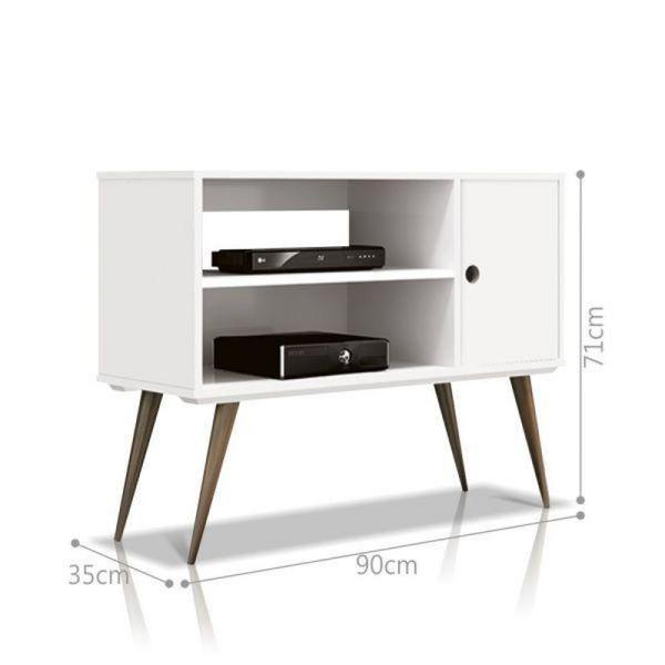 Rack Reale 71x90x35 cm - Branco O Rack Reale é inspirado no design retrô e comporta televisores de até 37\\". Feito especialmente para aqueles que querem deixar um estilo belo e único em seu ambiente. Possui espaços para deixar aparelhos eletrônicos e também podem ser usados ...