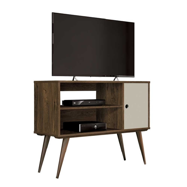 Rack Reale 71x90x35 cm - Nogal Off White O Rack Reale é inspirado no design retrô e comporta televisores de até 37\\". Feito especialmente para aqueles que querem deixar um estilo belo e único em seu ambiente. Possui espaços para deixar aparelhos eletrônicos e também podem se...
