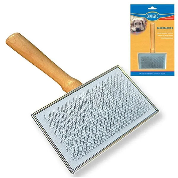 A rasqueadeira profissional deixa o seu animal com uma linda aparência e com pelos sedosos e desembaraçados. Possui cabo de madeira e cerdas metálicas ao escovar os pelos ativa o couro do animal estimulando o nascimento de fios novos e mais firmes. os pelos mortos ao caíre...