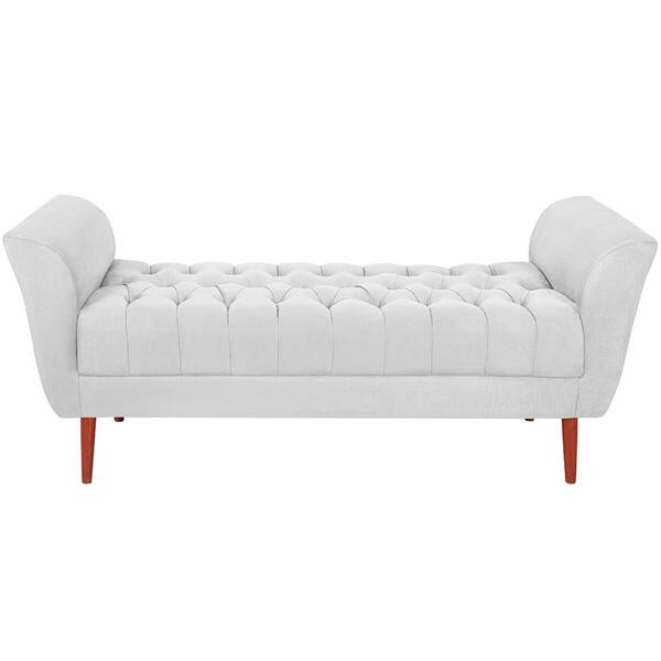 Recamier grecia 150cm suede, é perfeito para deixar seu quarto ou sua sala mais elegante e luxuoso. Estrutura em madeira de eucalipto, espuma em d-26, revestimento em tecido suede e acompanha pés palito em madeira de eucalipto de 20 cm na cor castanho. Suporta até 120kg. Deixando o seu ambiente ainda mais charmoso e aconchegante. Este móvel chegará na sua casa separado em 01 volume.dimensõesaltura 65 cmlargura 150 cmprofundidade 55 cmmedidas aproximadas assentoaltura do chão ao assento 45 cmlargura do assento 115 cmprofundidade do assento 52 cmsistema de montagemo produto é enviado montado, sendo necessário apenas a fixação dos pés.recomendação de limpezausar somente um pano umedecido com água, bem torcido para não encharcar o produto. Não utilizar produtos abrasivos.importante saberas imagens são meramente ilustrativas, não acompanham objetos de decoração e eletrônicos.a tonalidade da cor do produto pode variar de acordo a calibração de cores do seu monitor, a iluminação do ambiente ou sua percepção visual.ao receber a mercadoria, o cliente deve verificar a quantidade de volumes descritos na nota, as condições da embalagem, caso haja algum dano não assine o comprovante de recebimento e recuse a mercadoria.montagem, desmontagem e outras instalações serão de responsabilidade do cliente.não nos responsabilizamos, no ato da entrega, por subir escadas/elevadores ou pelo transporte por guincho em apartamentos. Eventuais despesas são de responsabilidade do comprador.confira as dimensões do produto e certifique-se de que passarão normalmente por supostos elevadores, portas, escadas ou corredores de sua residência.no momento do recebimento o comprador ou a pessoa que receber os produtos deve verificar se os produtos recebidos correspondem ao mesmo modelo e à mesma quantidade dos produtos adquiridos, o entregador equivocado pode entregar volumes de outra carga.garantia de fábrica90 dias para eventuais defeitos de fabricação.
