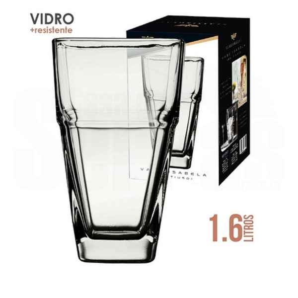 descrição do produto: - dimensões: (altura: 22,5cm x diâmetro: 13cm x capacidade: 1,6l) - peso: 1,2kg - material: vidro - cor: transparente - garantia: 3 meses - lavar produto com detergente neutro. - esponja fina.