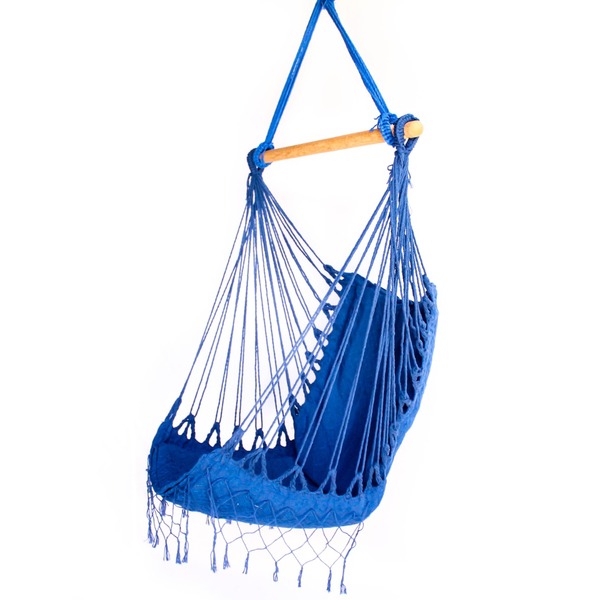 A rede de dormir é conhecida por proporcionar a sensação de relaxamento e descanso, não muito diferente da nossa rede cadeira.a rede cadeira foi criada a partir dos tecidos da rede tradicional, entre duas camadas de tecidos colocamos espumas ortobom no assento e no encosto.em suas laterais os mesmos punhos de uma rede tradicional , com quartoze pares de cordas 100% algodão trançados entre si, as cabeças por onde passam as cordas foram entrançadas manualmente, com uma acabamento manual em seu caseado , dando mais resistencia e qualidade aos trabalhos. Para que a rede se transforme em cadeira há um terceiro punho com três cabeças de carel feitos a mão, ainda acompanha um acessório de madeira.dimensões: 1,35 m x ,60 mencosto: 0,50 m x 0,45 massento: 0.85 m x 0,45 mpeso: +/- 3.000 kg incluindo a madeiracapacidade máxima de carga: 120 kgcomposição do tecido: 100% algodãocomposição da espuma: 100 % polipropilenodistancia ideial entre o gancho e o piso : aprox 2,20garantias: prazo de validade é de tempo indeterminado. Nossas rede de descanso não mancham e nem soltam tinta desde que sejam lavadas de acordo com o manual que as acompanham. Pode haver uma diminuição ou esticamento de cerca de 5% do tamanho total devido à lavagem. Nossos produtos são pré-selecionados por uma equipe que atesta sua segurança e qualidade contra os defeitos de fabricação