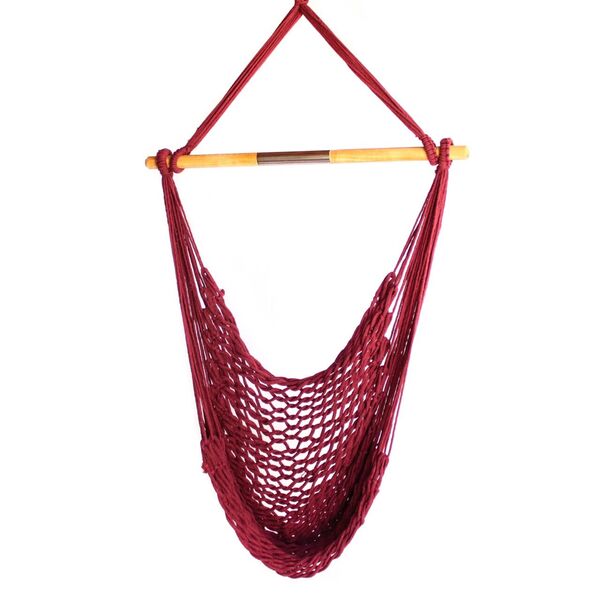 Rede cadeira trançada vinho 1,00x1,00mconheça nosso modelo de rede suspensa ou rede cadeira trançada. Esse modelo de rede cadeira é feita em cordão 100% algodão, altamente reforçado. Seu trançado parece uma rede tarrafa, não contém nós, dando mais conforto ao usuário.a rede c...