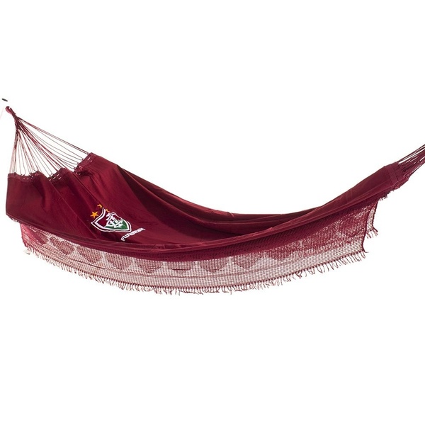 Rede de dormir?sol a sol bordada com emblema o centenario carioca?fluminense,?foi desenvolvida para quem é apaixonado por futebol e fã de uma bela?rede de descanso. Neste modelo exclusivo foi feita com tecidos em brim,?antialérgicos, não soltam pêlos e nem tinta,?o emblema foi bordado nos dois lados da rede de dormir.seu tamanho casal oferece o máximo de conforto e segurança, suporta até 200 kilos, que tal assistir os jogos do seu time preferido deitado numa bela rede de dormir.]dados do produtodimensões: 2,55 m x 1,60 m ( só tecido )comprimento total: 4,15 mpeso: +/- 1,900 kgcapacidade máxima de carga: 200 kgdistância ideal dos ganchos: aprox. 2,90 a 3,60 maltura ideal dos ganchos: aprox. 1,90 mpara garantir total durabilidade de sua rede de descanso?, siga corretamente as indicações do manual do produto. Para evitar manchas, encolhimento ou estiramento.