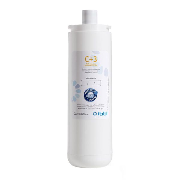 Refil filtro ibbl c+3 para purificador de água ibbl immaginare fr600 e outros produto original certificado pelo inmetro fácil instalação e 03 etapas de filtragem. Filtra até 3 mil litros de água.o refil filtro ibbl pré c+3 oferece toda tecnologia e segurança para saúde da água com 03 etapas de filtragem este produto é capaz de reter partículas e reduzir o cloro da água.o refil filtro pré c+3 também possui ação bacteriostática e controle do nível microbiológico garantindo uma água pura e cristalina para você e sua família.o ibbl c+3 ainda conta com a vantagem do refil girou trocou oferecendo maior praticidade e economia na hora da troca não necessitando da presença de um técnico.troque você mesmo seu refil!