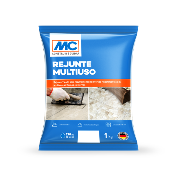 | Ambiente Indicado para Uso do Rejunte | Banheiros, Cozinhas, Fachadas, Garagens, Lavanderias, Piscinas, Quartos e Salas |