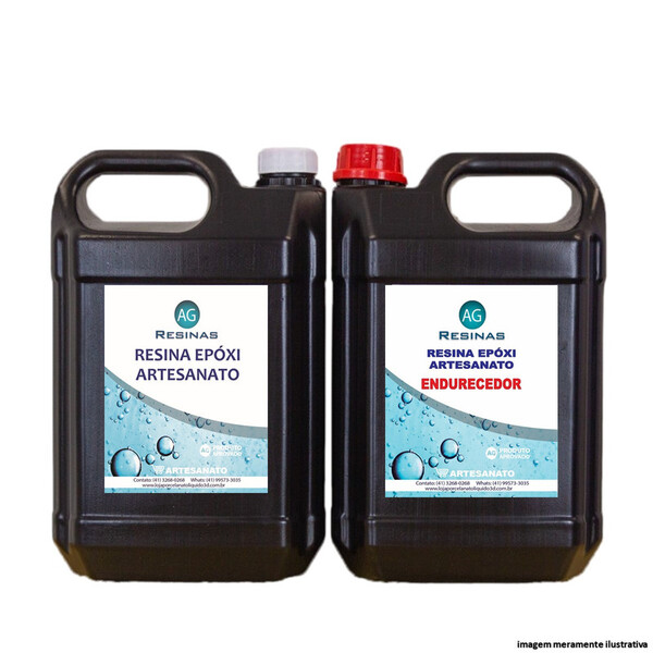 A resina epoxi artesanato ag ‚ e um kit bicomponente de alta qualidade, pois o produto esta  puro e livre de diluentes, proporcionando brilho intenso e acabamento excelente. Ideal para aplicacao com espessura de ate‚ 8 mm por camada. Contem um sistema de cura com endurecedor sem apresentar superficie oleosa ("blushing") mesmo quando e utilizado a temperatura ambiente, sendo ou nao em pelicula. Modo de preparo em um balde adicionar o componente b sobre o componente a, obedecendo sempre a proporcao de 50% do componente b em relacao ao componente a obedecendo sempre a proporção de 2 partes do componente a para 1 parte do componente b, ou seja: 2 a / 1 b a. Misture o componente a (resina) com o componente b (endurecedor) durante 5 minutos, apos a mistura derrame todo o produto do recipiente na superf¡cie desejada utilizando-o imediatamente. Secagem 12 horas e cura total em 7 dias.