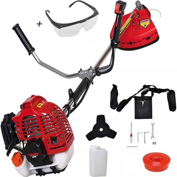 Roçadeira kawashima kw 26-l   tipo: lateral com guidão diâmetro da haste: 26 mm eixo cardã: 7 x 7 motor: kawashima m-2600 tipo do motor: 2 tempos gasolina cilindradas: 25 4 cc tipo de carburador: diafragma com regulage...