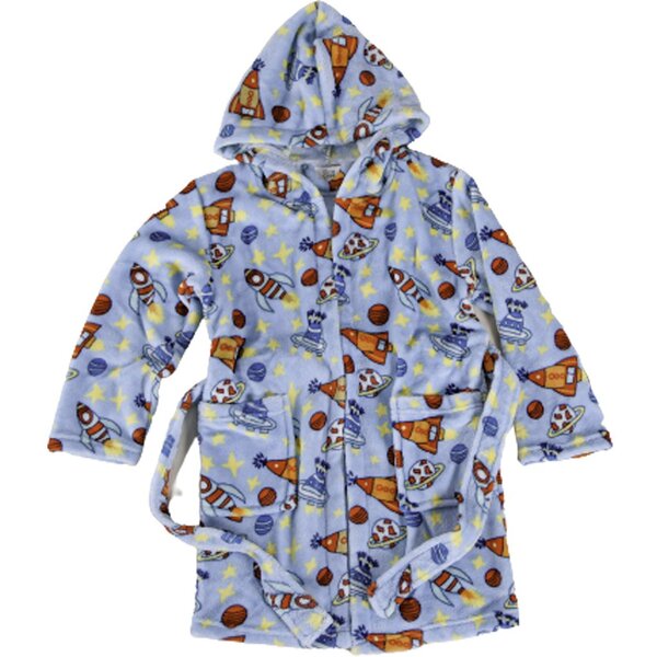 Roupão infantil microfibra com capuz azul foguete - m - gramatura 200g/m², 100% poliéster, toque flannel