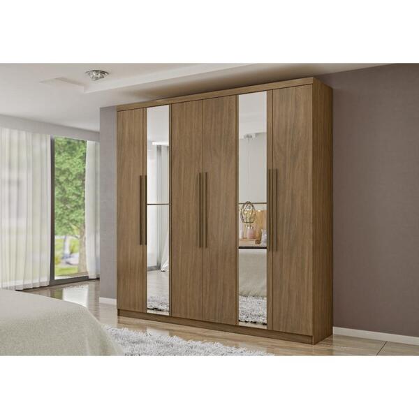 O guarda roupa 6 portas canoas agrega beleza e praticidade para o seu quarto. Com design moderno e funcional, possui interno com ótimo aproveitamento do espaço. Este "roupeirão" conta com 3 gavetas internas com corrediças metálicas, puxadores em abs com acabamento champagne e está disponível com espelhos. Dimensões: altura: 220 cm largura: 220 cm profundidade: 45 cm características: acabamento da prateleira: pintura escala de brilho da prateleira: fosco possui cabideiros: 02 acabamento da gaveta: pintura acabamento da porta: pintura texturizada uv escala de brilho da porta: fosco material do puxador da porta: abs necessita montagem: sim sistema de montagem: parafusos, cavilhas, porcas cilíndricas e pregos. Complexidade da montagem: média: pode ser montado por mais de uma pessoa e/ou necessite de maior conhecimento para montagem possui portas: 06 tipo de dobradiça/corrediça da porta: alumínio tipo de puxador da porta: externo tipo de porta: bater possui prateleiras: 08 peso: 138 kg possui pés: não escala de brilho: fosco quantidade de espelho: 04 espelhos com tamanhos iguais itens inclusos: 1 guarda roupa e manual de montagem. Tipo de guarda-roupa: casal material principal: mdp possui calceiros: 01 possui espelho sim origem do produto: nacional largura do espelho: 28 cm altura do espelho: 97 cm tipo de fixação do espelho: fita dupla face fita integrada: sim formato do espelho: retangular espessura do espelho: 3 mm possui gavetas: 03 tipo de gaveta: interna peso máximo por gaveta: 5 kg tipo de corrediça da gaveta: metálica simples recomendações de uso, manutenção e limpeza: limpar pano macio seco, não utilizar produtos abrasivos. Não expor o produto diretamente à luz solar e à umidade. Garantia: 03 meses contra defeitos de fabricação. Os serviços de entrega são realizados por empresas terceirizadas parceiras assim os entregadores não são autorizados: - entrar no domicílio, sem estar acompanhado pelo cliente; - entrar ou subir desacompanhado em prédio residencial ou comercial, o cliente precisa receber o pedido na portaria; - entregar por meios alternativos (exemplo: içar produto por janela, subir escadas); - entregar em edifícios, entrega será realizada apenas na portaria; - realizar montagens, instalação ou manutenção de produtos; - abrir a embalagem do produto; - realizar entrega em endereço diferente do que consta na nota fiscal; - realizar entrega a menor de idade ou sem documento de identificação;