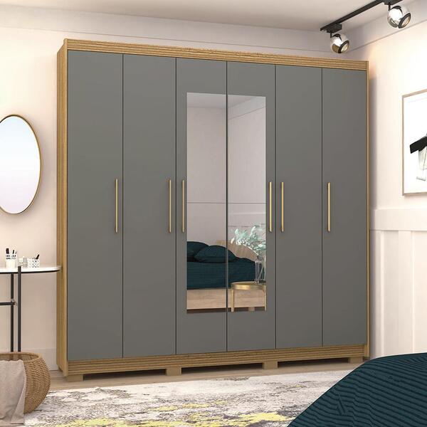 O guarda roupa é o complemento ideal para o seu quarto. É perfeito para quem busca um amplo espaço para armazenamento e organização. O guarda roupa feito em mdp dispõe de seis gavetas, seis portas, cabideiros com duas opções de montagem e possui espaço para guardar os sapatos. Acompanha kit de espelhos para fixação nas portas dimensões do guarda roupa: altura: 223 cm largura: 223 cm profundidade: 47 cm informação do produto: cor: nature alasca gavetas: sim (6) pés: sim (8) cabideiro: sim (2) prateleiras: sim (10) espelhos: sim (4) itens inclusos: 01 guarda roupa manual de montagem kit completo para montagem e manual de instruções garantia: 3 meses contra defeito de fabricação informações adicionais: - fotos meramente ilustrativas do produto no ambiente. - os objetos que ambientam as fotos não acompanham o produto; - verificar descrição e tamanho do produto antes da compra. - avaliar a mercadoria no ato do recebimento e recuse em caso de divergência ou avarias. - mantenha as informações de contato e endereço de entrega atualizados para entrarmos em contato caso necessário. - limpar com flanela ou pano macio seco, não utilizar produtos abrasivos, desengordurantes, álcool ou solvente. Não expor o produto diretamente à luz solar e à umidade. * sugerimos a contratação de um montador profissional para a montagem do produto. Não nos responsabilizamos por avarias causadas no ato da montagem. * não nos responsabilizamos pela montagem e desmontagem do produto no ato da entrega e devolução, assim como os custos gerados nestas situações. * a transportadora entregará o produto no andar térreo do endereço de entrega. * não nos responsabilizamos por subir escadas, corredores e elevadores ou transporte por guincho em apartamentos.