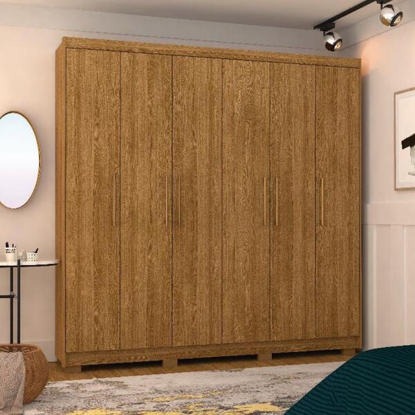 O guarda roupa é o complemento ideal para o seu quarto. É perfeito para quem busca um amplo espaço para armazenamento e organização. O guarda roupa feito em mdp dispõe de seis gavetas, seis portas, cabideiros com duas opções de montagem e possui espaço para guardar os sapatos. Dimensões do guarda roupa: altura: 223 cm largura: 223 cm profundidade: 47 cm informação do produto: cor: nature gavetas: sim (6) pés: sim (8) cabideiro: sim (2) prateleiras: sim (10) itens inclusos: 01 guarda roupa manual de montagem kit completo para montagem e manual de instruções garantia: 3 meses contra defeito de fabricação informações adicionais: - fotos meramente ilustrativas do produto no ambiente. - os objetos que ambientam as fotos não acompanham o produto; - verificar descrição e tamanho do produto antes da compra. - avaliar a mercadoria no ato do recebimento e recuse em caso de divergência ou avarias. - mantenha as informações de contato e endereço de entrega atualizados para entrarmos em contato caso necessário. - limpar com flanela ou pano macio seco, não utilizar produtos abrasivos, desengordurantes, álcool ou solvente. Não expor o produto diretamente à luz solar e à umidade. * sugerimos a contratação de um montador profissional para a montagem do produto. Não nos responsabilizamos por avarias causadas no ato da montagem. * não nos responsabilizamos pela montagem e desmontagem do produto no ato da entrega e devolução, assim como os custos gerados nestas situações. * a transportadora entregará o produto no andar térreo do endereço de entrega. * não nos responsabilizamos por subir escadas, corredores e elevadores ou transporte por guincho em apartamentos.