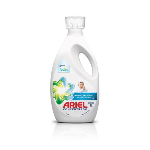 O sabão líquido ariel sensitive é hipoalergênico, por isso é ideal para lavar roupas de bebê ou adicionar um cuidado extra caso você ou alguém na sua familia tenha pele delicada. Ele foi desenvolvido para ser uma opção segura que não agride a pele e é eficaz na remoção de manchas. Este é um sabão líquido que não possui corantes, não deixa resíduos visíveis nos tecidos e nem na máquina de lavar, e possui ainda fórmula dermatologicamente testada. Por esses motivos é recomendado por pampers para o cuidado com as roupas dos seus bebês. Por ser hipoalergênico é recomendado para pessoas de qualquer idade que tenham algum tipo de sensibilidade na pele. Para proporcionar segurança a todos os tipos de pele, ariel hipoalergênico suave e gentil possui perfume e fórmula dermatologicamente testada. Para utilizar o ariel sensitive é fácil*: basta medir 80ml do produto, aplicar uma camada sobre as manchas, se for necessário, e despejar o restante no dispenser ou diretamente na máquina. O sabão líquido ariel sensitive é hipoalergênico, não possui corantes e é dermatologicamente testado; seguro para roupas de bebês e de pessoas com pele delicada; o sabão ariel de 2l rende até 25 lavagens*; o lava roupas ariel não deixa resíduos visíveis na máquina de lavar e nos tecidos, e ajuda a prevenir sinais de desgastes; recomendado pela electrolux e por pampers; se combinado com downy, marca n1 de amaciantes do brasil**, as roupas ficam leves e confortáveis. *baseado em instruções de uso do fabricante **baseado em dados nielsen brasil, para o ano de 2021