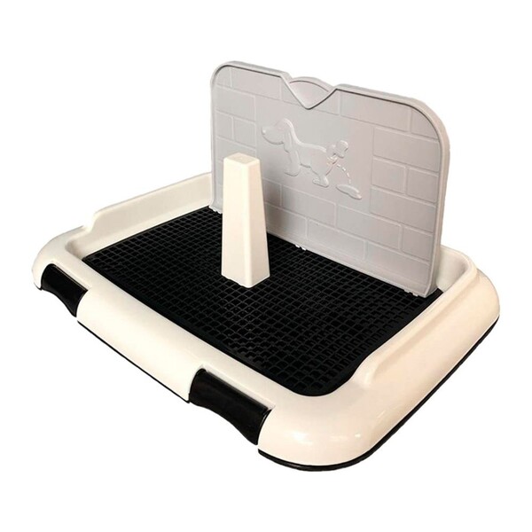 1 Tampa de plástico erguida para o cachorro fazer as suas necessidades como se fosse uma parede (a urina da tampa escorre para dentro da bandeja)