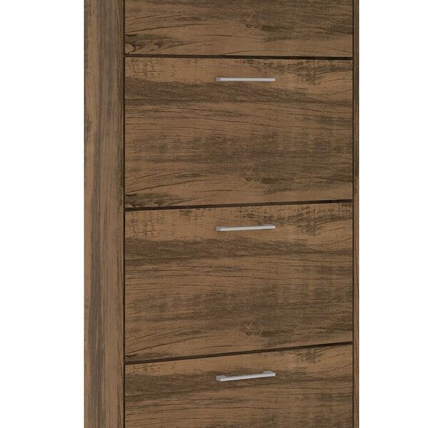 a sapateira anne - moveisaqui é perfeita para agregar aquele cantinho do seu quarto. Compacta e com amplas gavetas que organizam seus calçados de forma prática e objetiva possui ainda lindas opções de cores que unidas ao seu design clean possibilita a combinação com diversos estilos de móveis deixando seu dormitório ainda mais completo e personalizado. dimensões do produto montado: altura: 147 cm largura: 66 cm profundidade: 23 cm observações: - fabricado em mdp; - 04 gavetas basculantes; - sapatas em pvc; - puxadores em pvc; - amplo espaço para acomodação de calçados; - pintura ultravioleta com acabamento fosco.