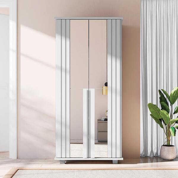 Essa sapateira é perfeita para você que quer um quarto bonito e elegante. Feito em mdp e mdf, com detalhes ripados, 2 portas com espelhos. Medidas da sapateira: altura: 194,5 cm largura: 91 cm comprimento: 45,5 cm informações do sapateira: cor: branco. Prateleiras: sim (6) po...
