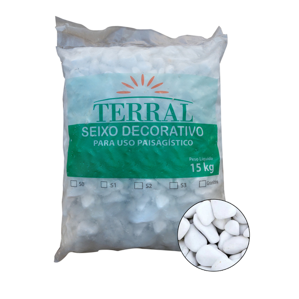 Na decoração do seu jardim ou dos seus vasos de plantas, utilize o seixo branco terral, com 4 tamanhos diferentes. O seixo pode ser encontrado em 4 tamanhos: s0 (altura linear 0,3 cm), s1 (altura linear de 1 cm), s2 (altura linear de 2 cm), s3 (altura linear de 3 cm).