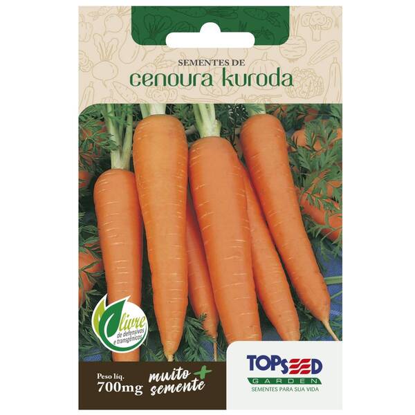 Sementes de cenoura kuroda topseed   descrição * nome cientifico: daucus carota. * forma levemente cônica, lisa, com cor laranja intensa e bom sabor. * deve ser colhida em torno de 16 x 3 cm.   características * modo de plantio: siga as instruções no rótulo. * época ...