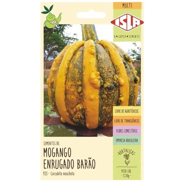 Sementes de mogango enrugado barão isla   descrição * planta vigorosa com espinhos brancos nas ramas * frutos oblongos, enrugados e com gomos * polpa de coloração amarela * na culinária é tradicionalmente usado para caramelização * rico em fibras, vitamina a e b e sais...