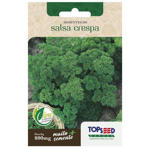 Sementes de salsa crespa topseed descriçao * planta ereta, com aroma suave e sabor agradável. * usado como ornamentação de pratos.   características * germinação (dias) 7 - 28 dias.   informações/dicas/usos * tipo da embalagem: envelope tradicional * sementes por gr...