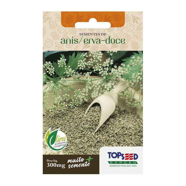 Anis/erva-doce   nome popular: anis / erva-doce. Nome cientifico: pimpinella anisum.   descrição * planta anual herbácea, com até 1 mt de altura. * cresce melhor em solo leve e bem drenado.   características * usado como condimento, chás e remédio herbal, por seu efeito digestivo. * ppara uso medicinal, consulte seu médico. * germinaçao de 10 a 21 dias   informações/dicas * sementes por grama 200 a 300 * conteúdo do pacote 300mg