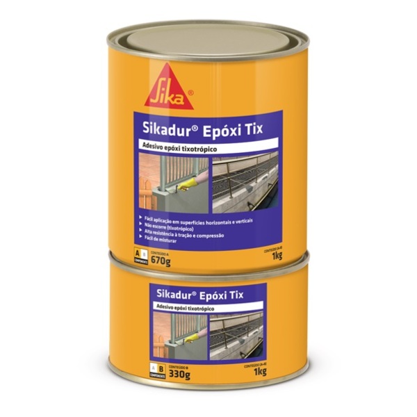 Sikadur epóxi tix: adesivo estrutural de alta performance para seus projetos   o sikadur epóxi tix é a escolha ideal para quem busca um adesivo estrutural de alta viscosidade, bicomponente e de pega normal. Com vantagens que garantem resistência, durabilidade e versatilidade em diversas aplicações, este produto destaca-se por suas características excepcionais.   principais vantagens:   endurecimento rápido:   proporciona um rápido desenvolvimento de resistência, acelerando o tempo de conclusão do projeto. excelente aderência:   apresenta excelente aderência a uma variedade de superfícies, incluindo concreto, argamassa, madeira, fibrocimento, pedras, cerâmicas, aço, ferro, alumínio, vidro e outros materiais de construção. impermeabilidade:   oferece impermeabilidade, protegendo as estruturas contra a penetração de água e substâncias prejudiciais. elevadas resistências mecânicas:   possui elevadas resistências mecânicas à tração e compressão, garantindo a estabilidade e integridade das estruturas. resistência química:   demonstrando excelente resistência a óleos, graxas, gasolina, soluções salinas, ácidas e alcalinas diluídas, águas residuais e outras substâncias químicas. tixotropia (não escorre):   sua característica tixotrópica assegura que o adesivo permaneça onde é aplicado, facilitando a utilização em aplicações verticais e overhead. principais usos:   colagem entre concreto velho e novo:   proporciona uma união robusta entre superfícies de concreto recentemente aplicadas e as existentes. fixação de apoios estruturais:   oferece fixação segura para apoios estruturais, contribuindo para a estabilidade das estruturas. ancoragem de cabos:   proporciona uma ancoragem eficaz de cabos, melhorando a organização e segurança nas instalações. colagem entre elementos pré-moldados:   ideal para unir elementos pré-moldados, proporcionando resistência superior. juntas de concretagem (juntas frias):   utilizado na criação de juntas de concretagem, facilitando a transição entre diferentes seções de concreto. fixação de chumbadores, calhas e guias, na horizontal:   garante a fixação horizontal de elementos, chumbadores, calhas e guias. reparos em arestas de concreto aparente, trincas e defeitos superficiais:   ideal para reparos que visam restaurar a integridade e estética do concreto. dados do produto:   aspecto/cor: cinza claro, tixotrópico.   validade: 24 meses, a partir da data de produção, quando armazenado adequadamente, nas embalagens originais e intactas, em temperaturas entre +5°c e +25°c, protegido da luz direta do sol e do gelo.   desfrute da segurança e durabilidade que o sikadur epóxi tix oferece. Adquira agora e eleve a qualidade de suas aplicações estruturais!