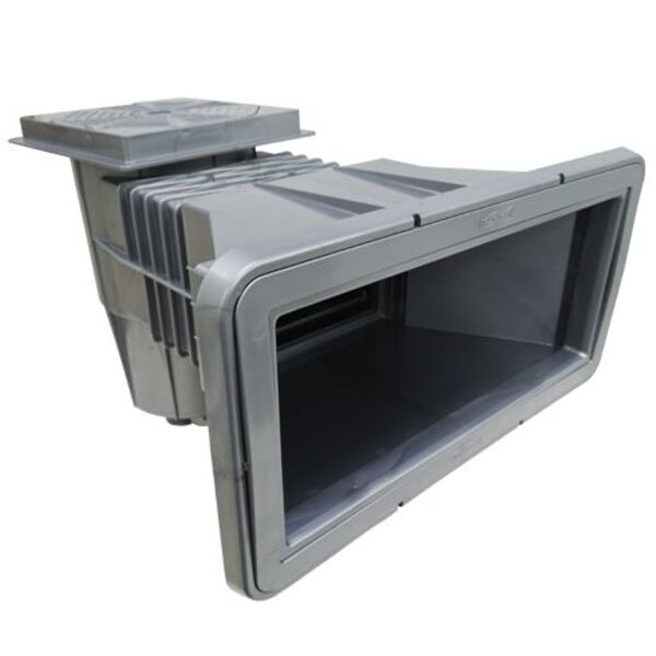 Skimmer boca larga prata - sodramar os skimmers promovem a movimentação e remoção constante da camada superficial da água da piscina retirando as impurezas em suspensão na lâmina d'água da piscina onde se encontra o maior índice de contaminação em função da menor presen...