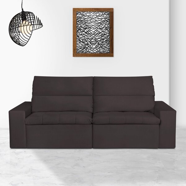 Sofá 3 lugares 210cm azzaro marrom. Madeira de reflorestamento secada em estufa, imunizada e placas em mdf. espuma de alta densidade, mecamismo retrátil em aço com abertura de 55 cm. Percintas tipo italiana, molas bonel e espuma revestidos com manta siliconada para melhor m...