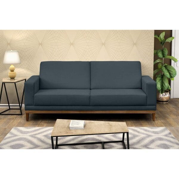 Sofá 3 lugares cronus azul. Sofá cronus 3 lugares, estrutura de madeira de eucalipto proveniente de reflorestamento, montagem com grampos galvanizados,encosto fixo com cintas elásticas e espuma soft plumante, assento fixo bipartido com cintas elásticas e espuma d26 plumante ...